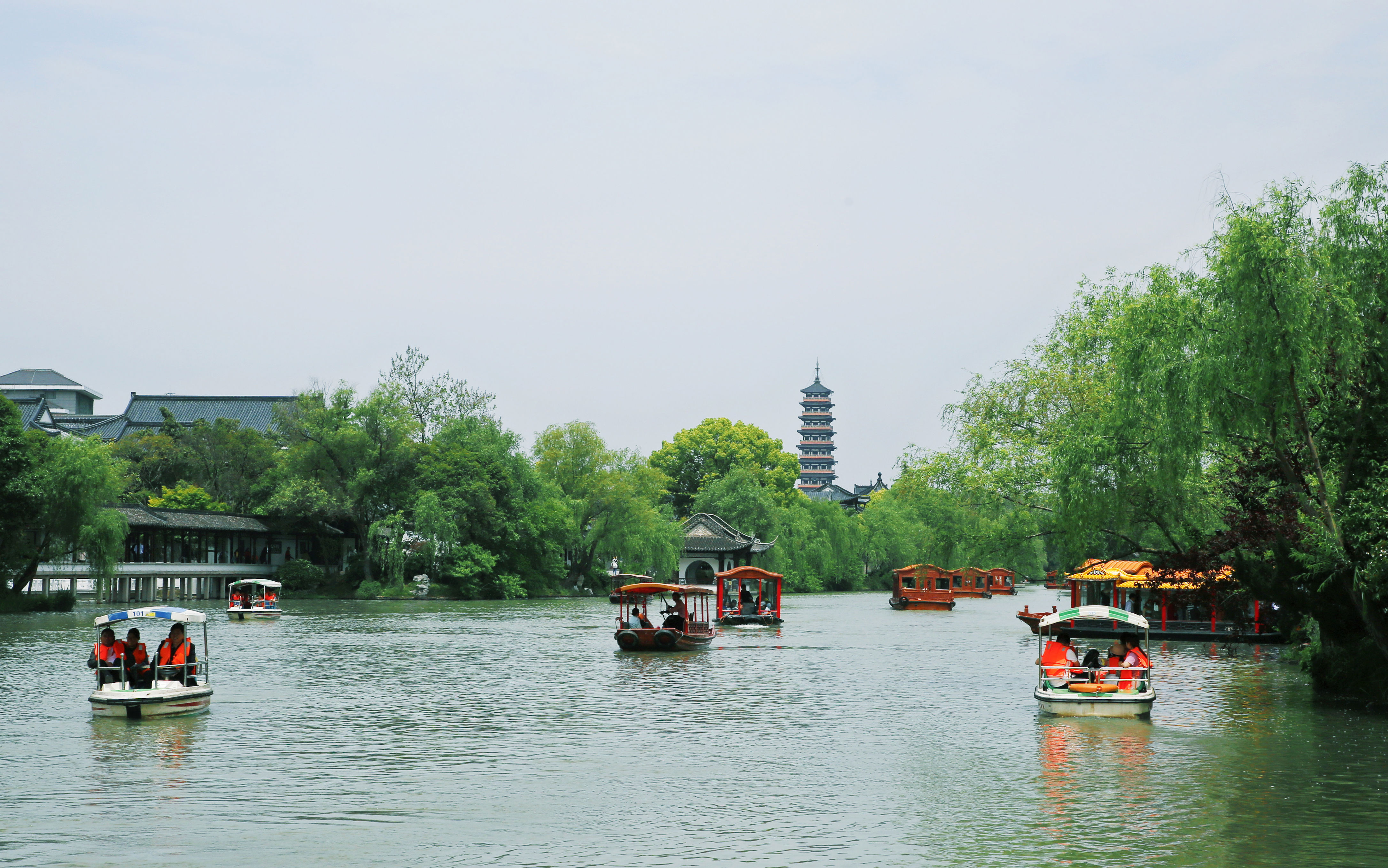 到扬州瘦西湖,乘坐一艘花房,穿梭在云水间。