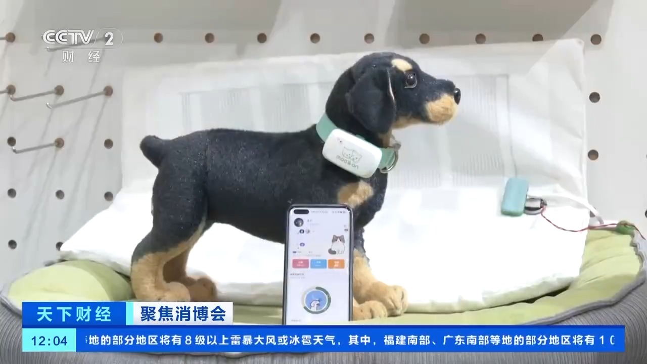 参展商 陈澧得:宠物躺在上面,可以测它的心跳呼吸、情绪,如果它的数据跟平常不一样, 只要连续10分钟,就会发警报告诉你要注意。